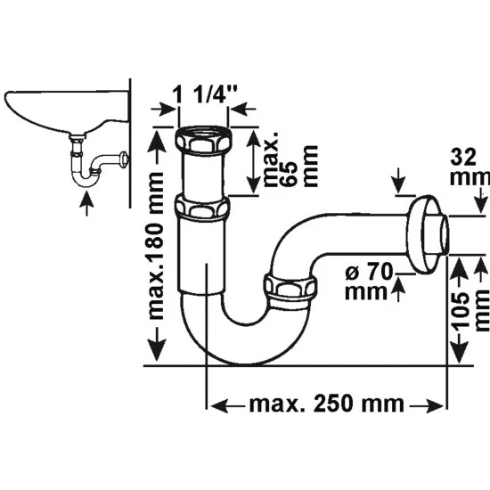 - Lieferumfang: Röhren-Geruchsverschluss mit Verstellrohr inkl. Rosette